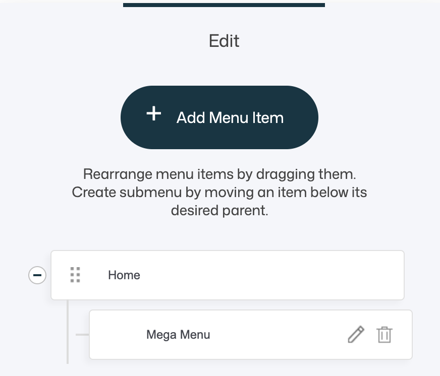 Once created, click the Edit (pencil) icon on the Mega Menu