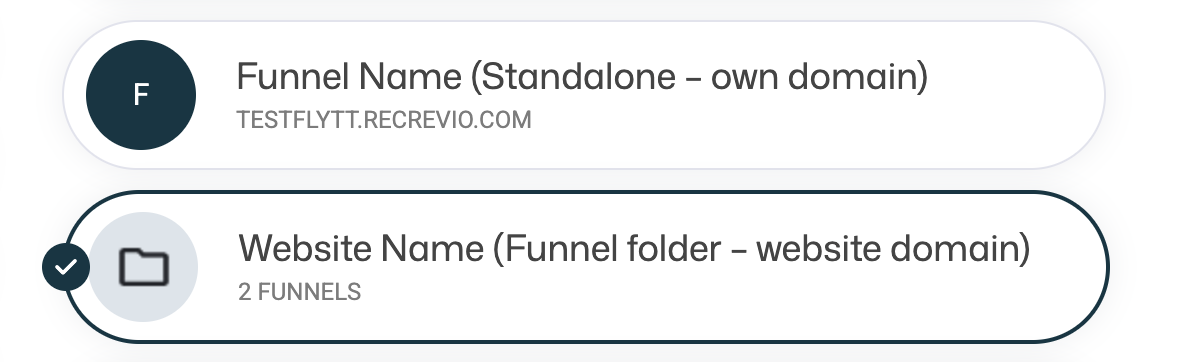- Shown with a folder icon and also showing the total number of funnels under that website/domain