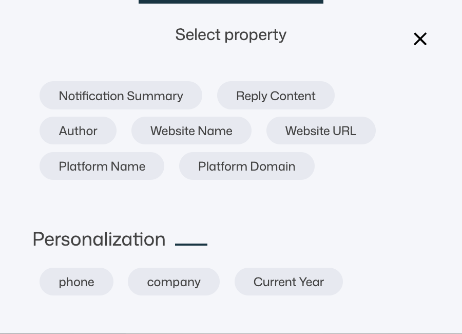 Here you will see all the specific fields allocated to the Replied to you 'community' system email. If you have any Personalization tas these will be available options too.