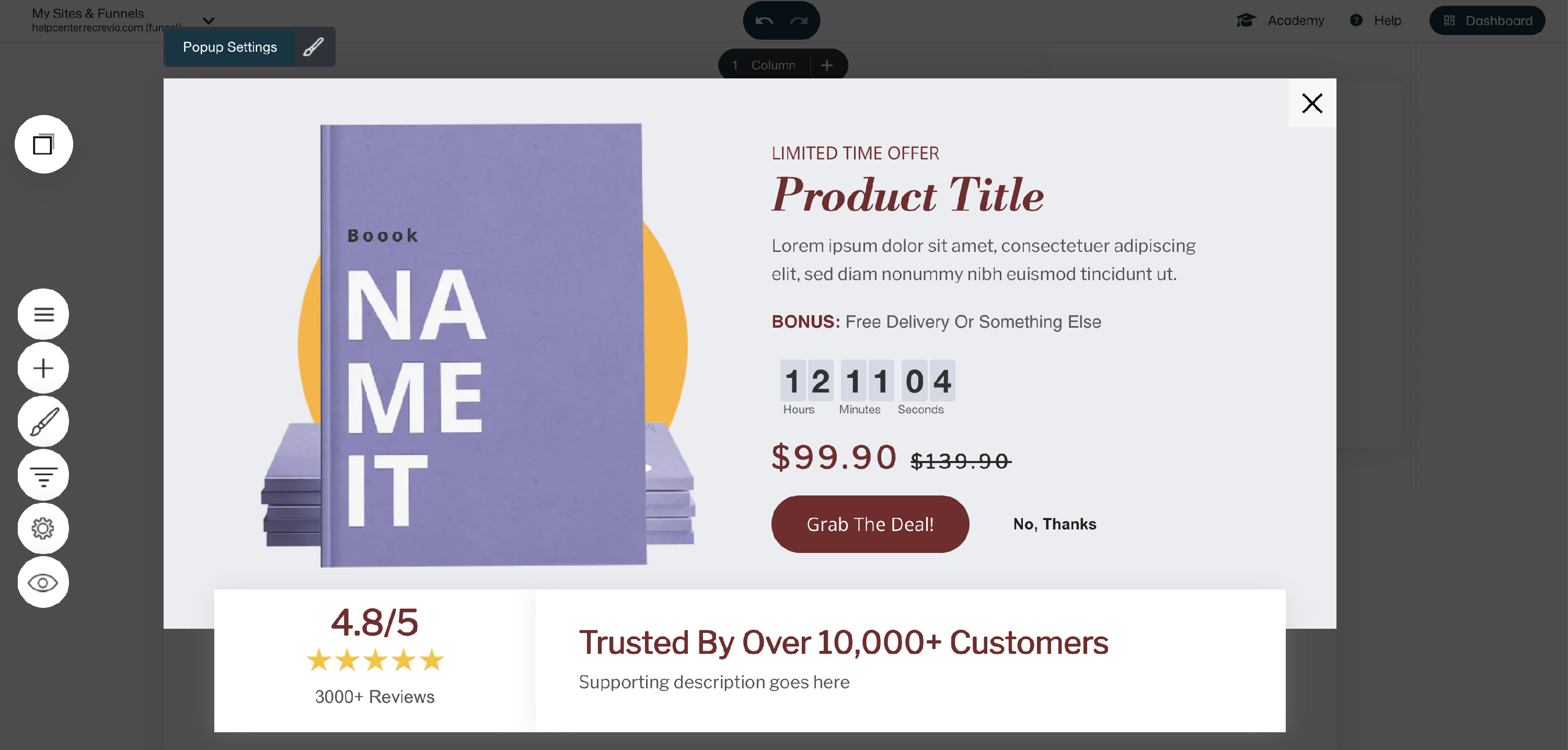Without the Upsell/Downsell widget, the page or popup will not function as an upsell or downsell — even if it looks correct visually.