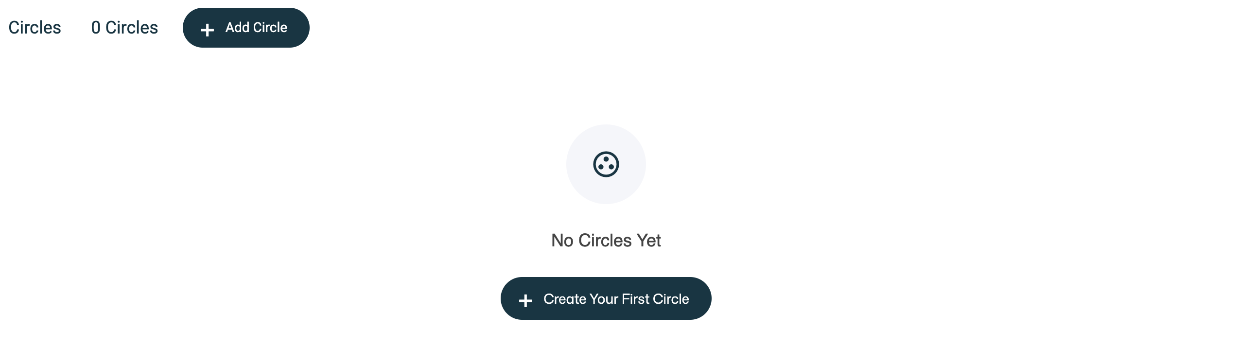 This is the main overview where all your existing circles are listed. If you havenβt created any circles yet, youβll see an empty state with an option to get started.