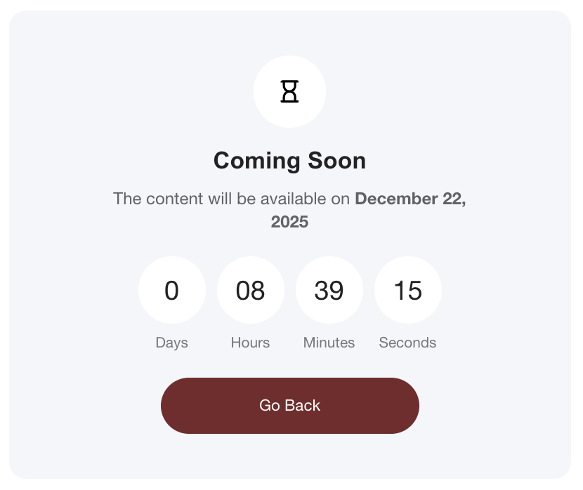 If a member tries to access the page before the release time, they’ll see a locked state with a countdown timer indicating when the content becomes available.
