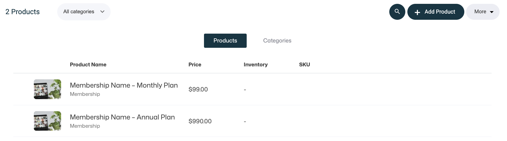 The Products area is where you manage everything you sell inside Recrevio. From here, you can create, organize, import, and manage all your products—both digital and physical – as well as services and memberships.