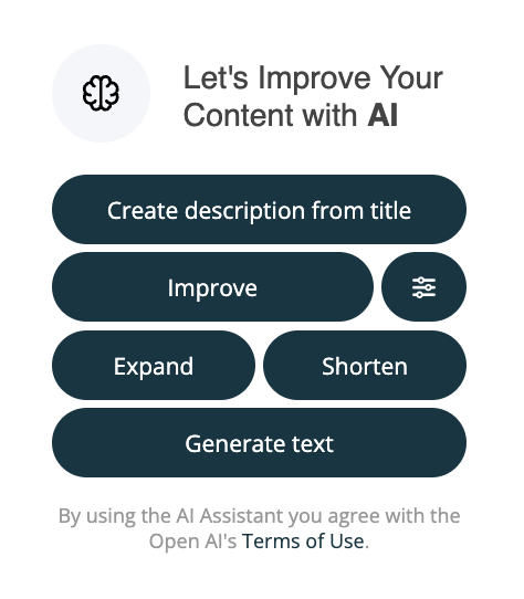You can use the built-in AI Writing Assistant to quickly create or improve your product description.