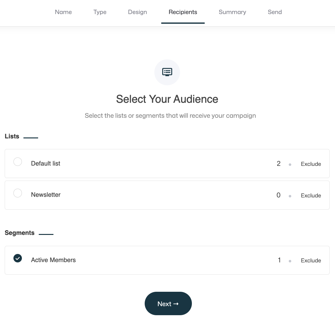 If the recipient count doesn’t look correct, you can go back to the Recipients step to adjust your list or segment selection before sending the campaign.