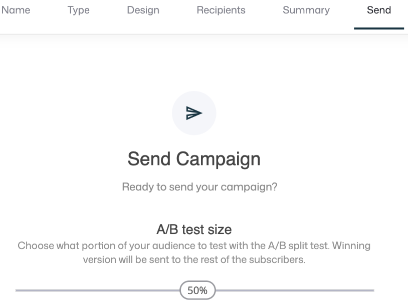 If you are sending an A/B split campaign, you will also choose the A/B test size.