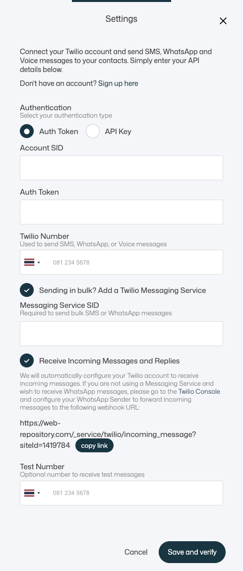 If everything is correct, your Twilio connection will be saved and ready to use for: