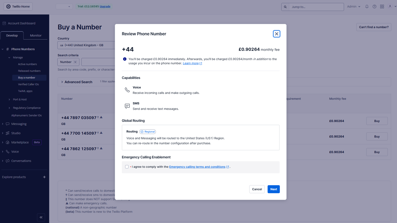 - Agree to emergency calling terms (for voice-enabled numbers)