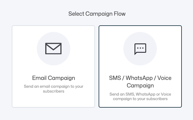 - Select Campaign Flow (SMS, WhatsApp or Voice)