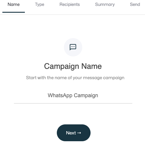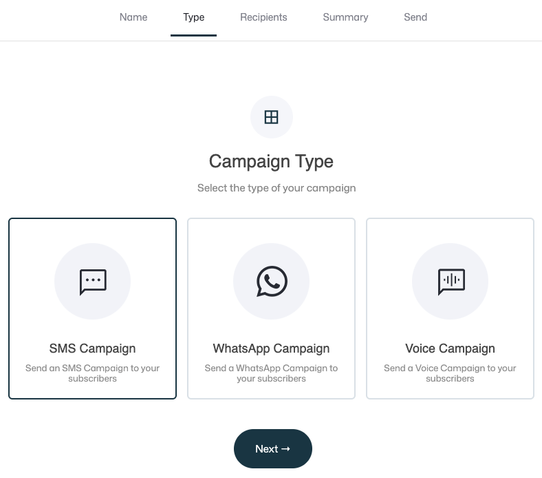 Step 4: Select campaign type (SMS, WhatsApp, or Voice)