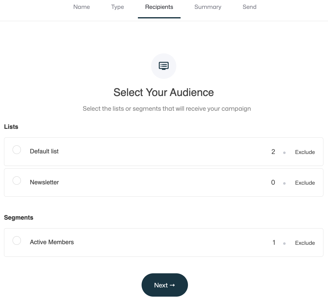 If the recipient count doesn’t look correct, you can go back to the Recipients step to adjust your list or segment selection before sending the campaign.