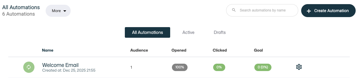 Automation performance, goals, and revenue tracking are handled separately and can be found in the Goals & Analytics tab