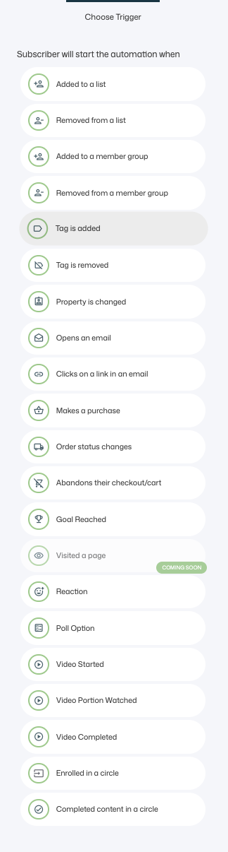 Triggers determine when and why a contact starts an automation. An automation can have one or multiple triggers.