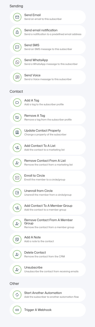 - Apply actions across email, SMS, WhatsApp, voice, and contact management
