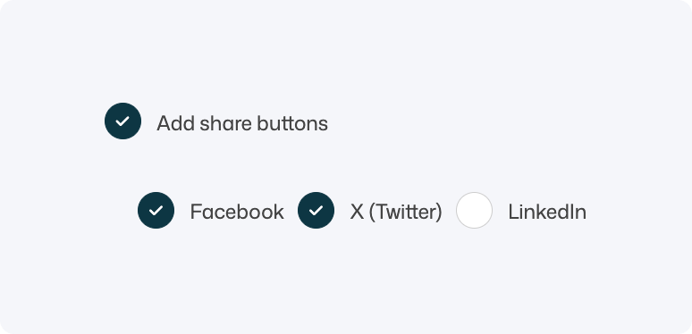 Enable Add share buttons to allow readers to share blog posts on social platforms.