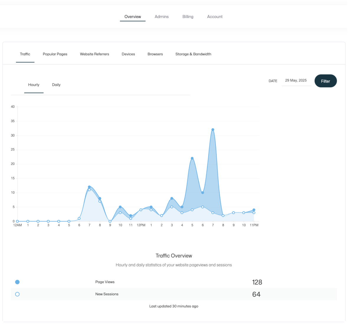 The statistics shown in the dashboard are based on the currently selected website or funnel.