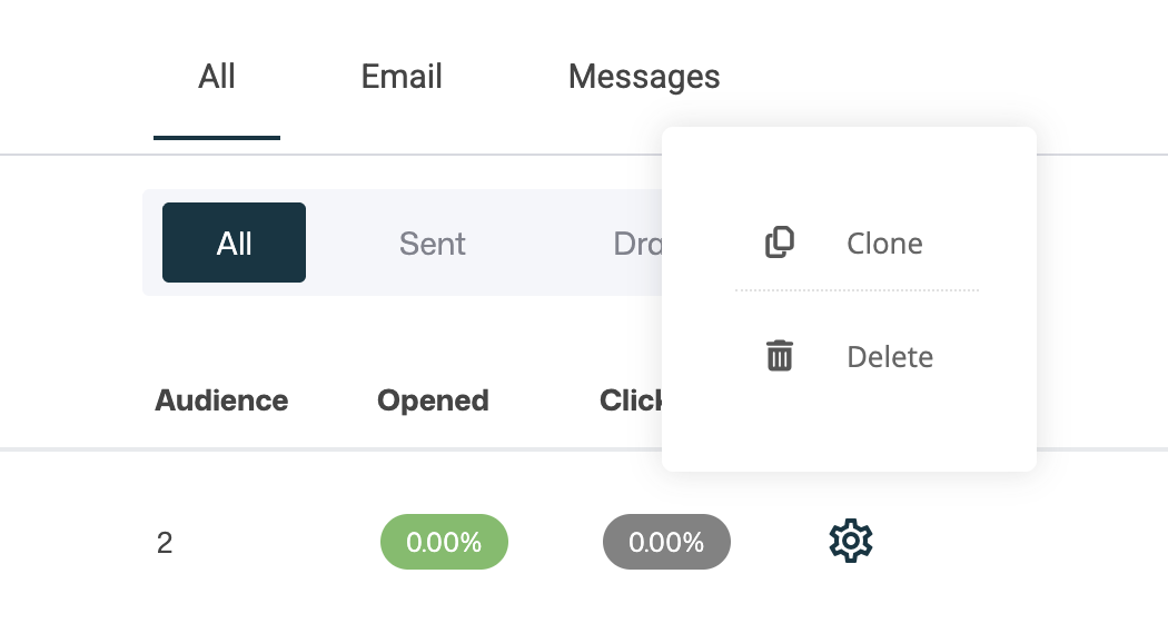 If you want to reuse everything from a previous campaign—including recipients, subject line, and design—you can simply copy (clone) the entire campaign.