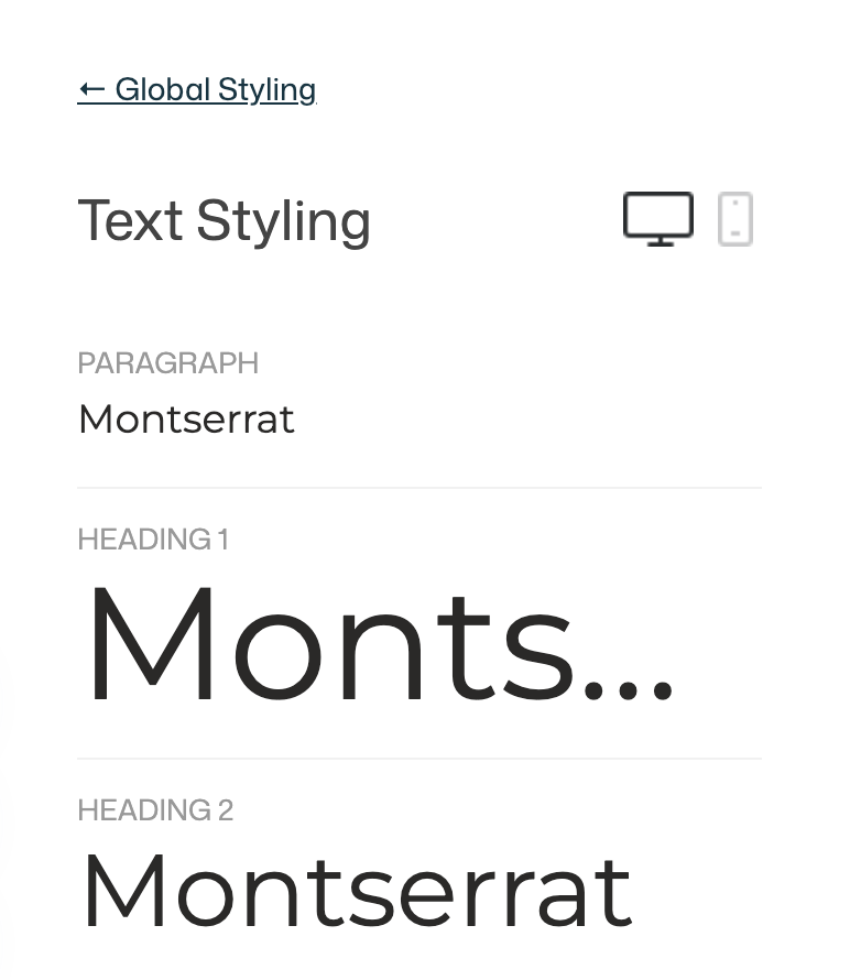 When you open Text Styling, you’ll see a list of elements you can configure: