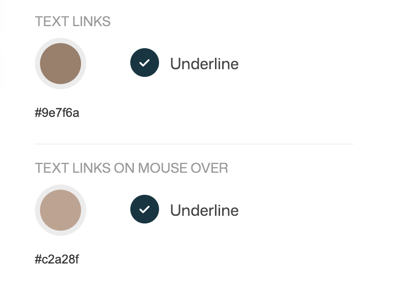 - My links don’t match my brand color: Update Text Links and Hover colors here.