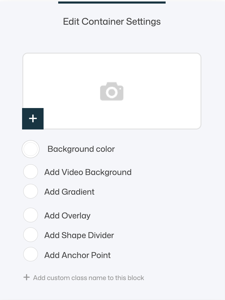 The Block Settings control the overall look and behavior of the container.
