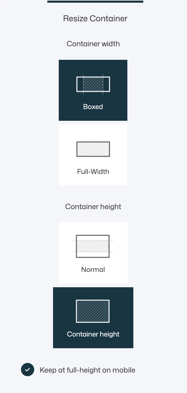 - Keep at full-height on mobile → Ensures that containers set to full height remain full-screen on smaller devices. Useful for impactful hero sections.