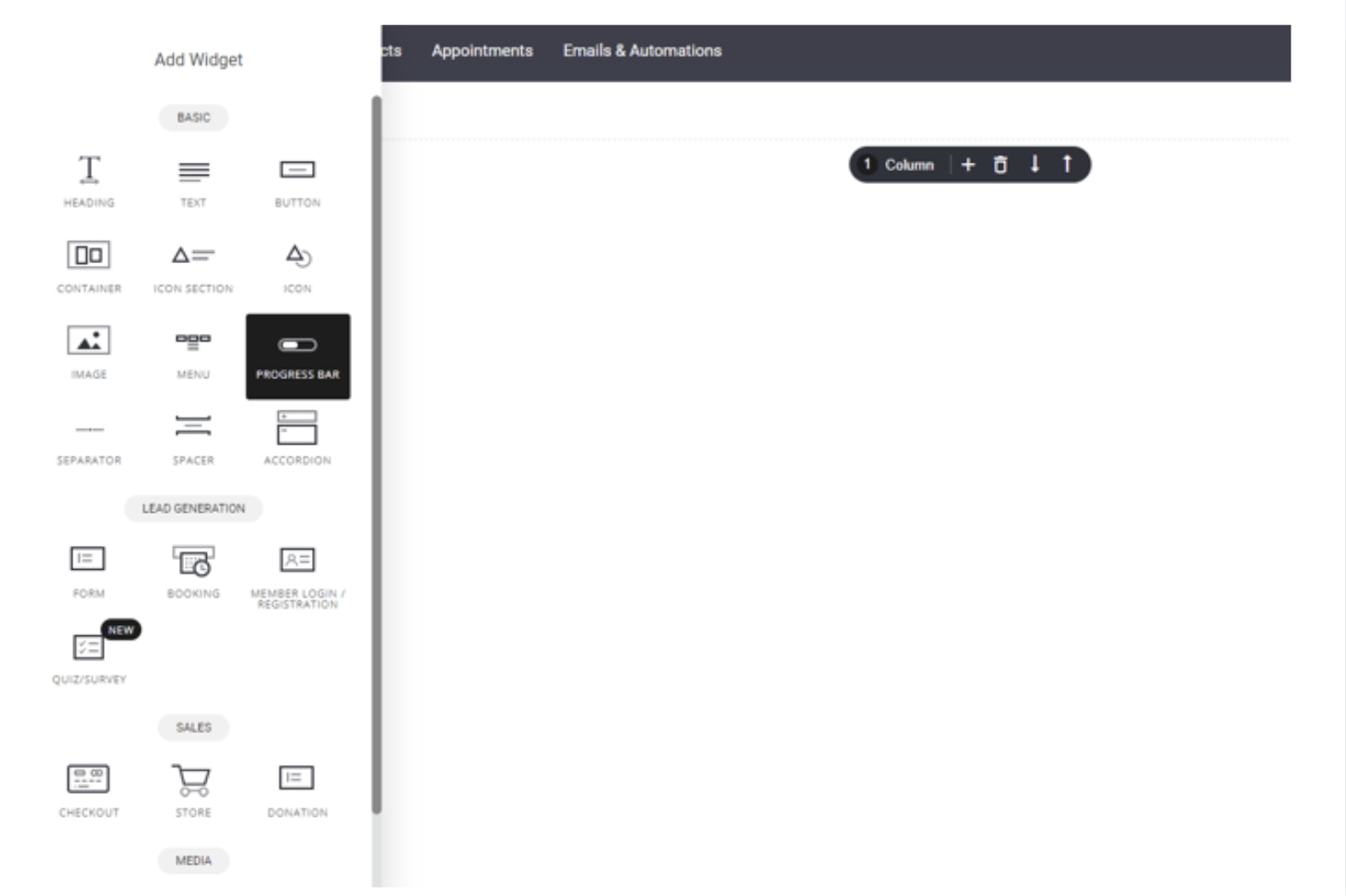 Navigate to Widgets and choose the progress bar option.