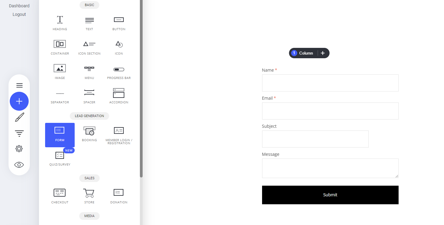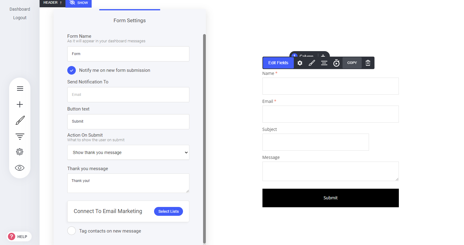 - Actions on submit either a simple thank you message or re-directing them to a custom or pre-existing page or funnel step.