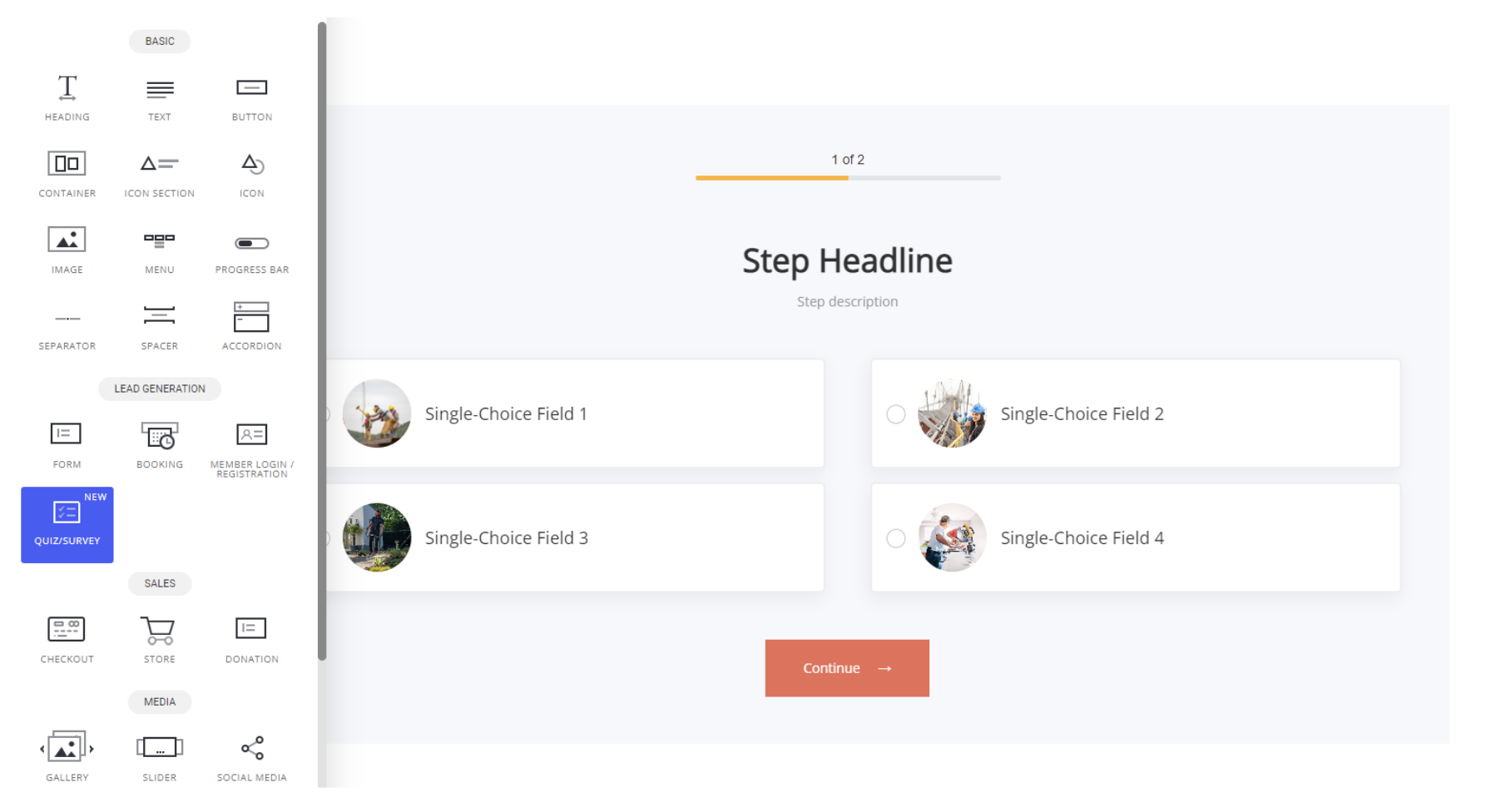 In this article you will discover how to create, manage and use quizzes to help generate leads and sales for your business. Firstly navigate to the elements section and select the quizzes widget: