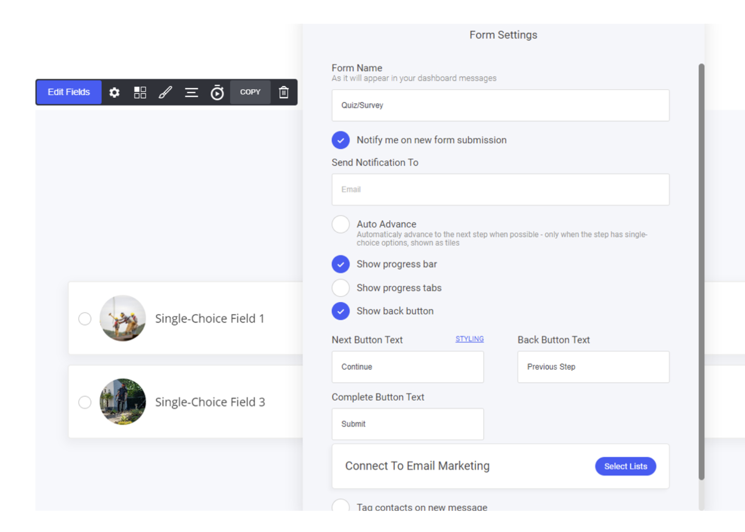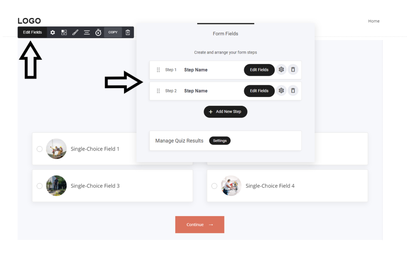 The next step is to start editing your quiz questions, simply select the edit fields tab.