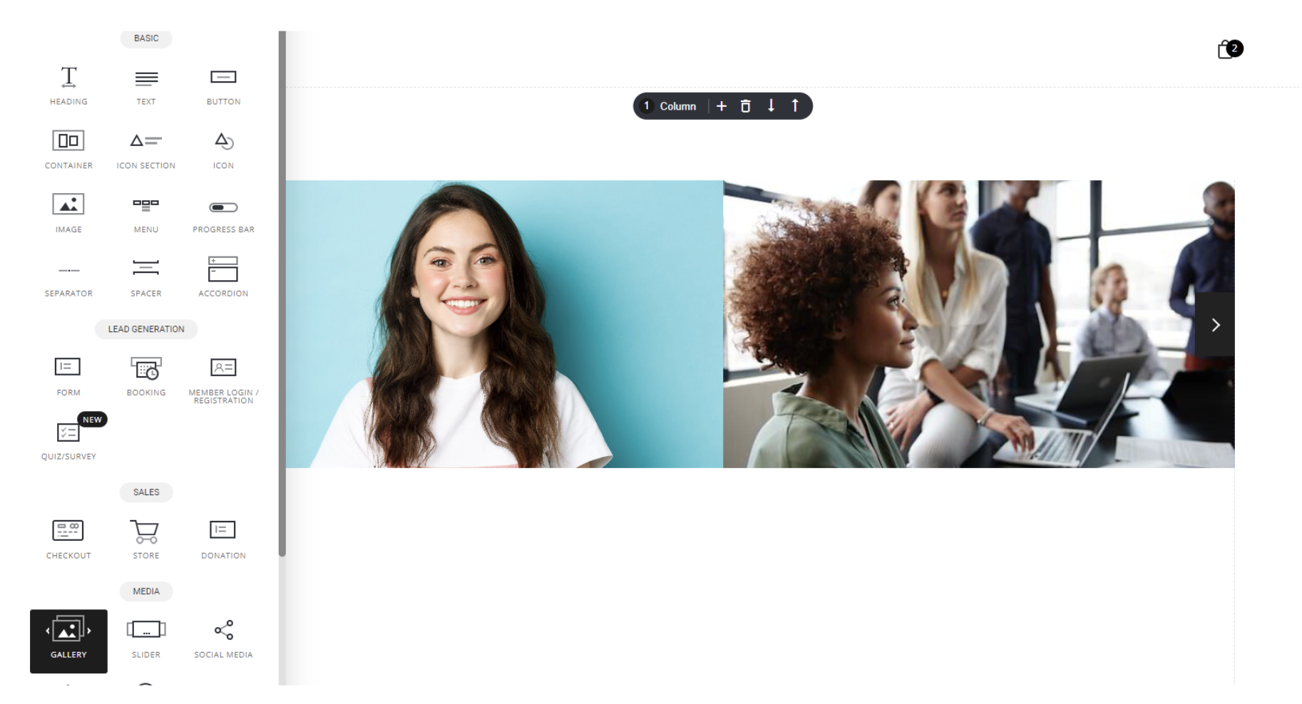 The gallery widget is simply an element to display images either within a grid or an interactive carousel.