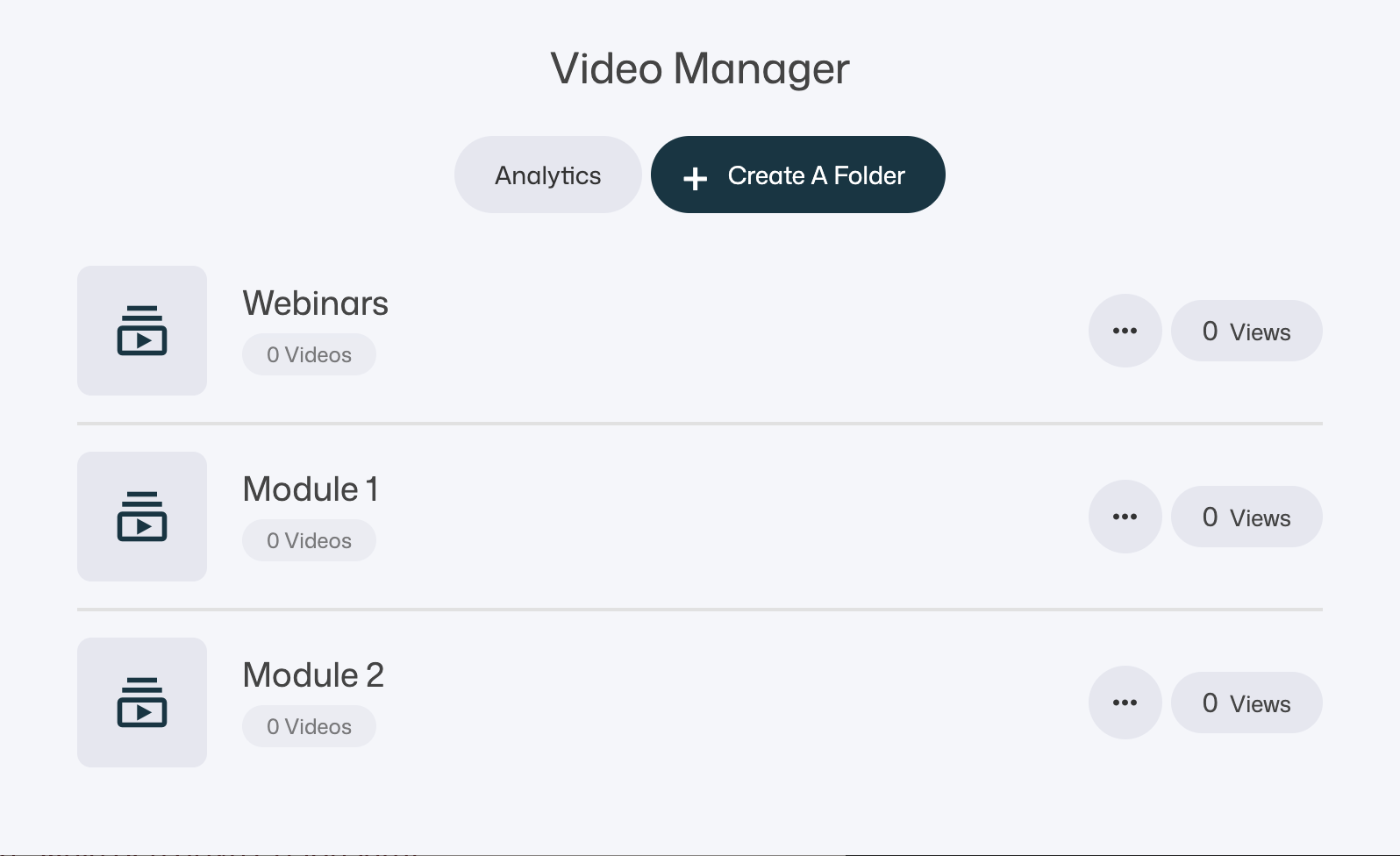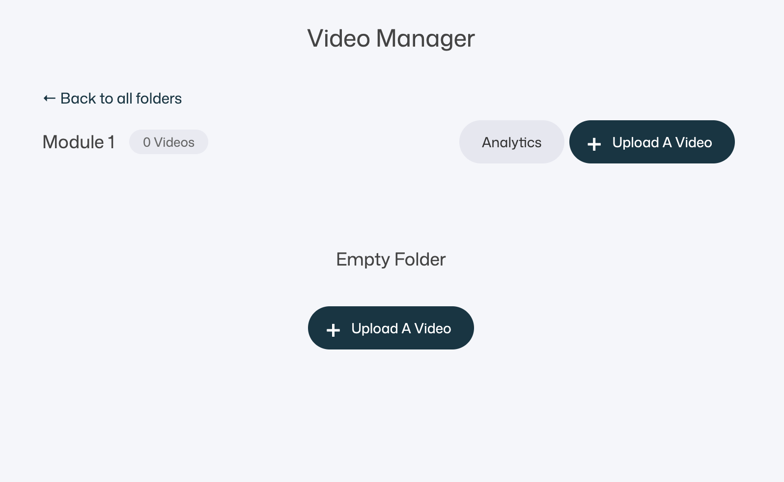 Let's open the folder we have just created called 'My Videos' – in here you'll be able to upload your video content. Click any of the +Upload A Video tabs to start.