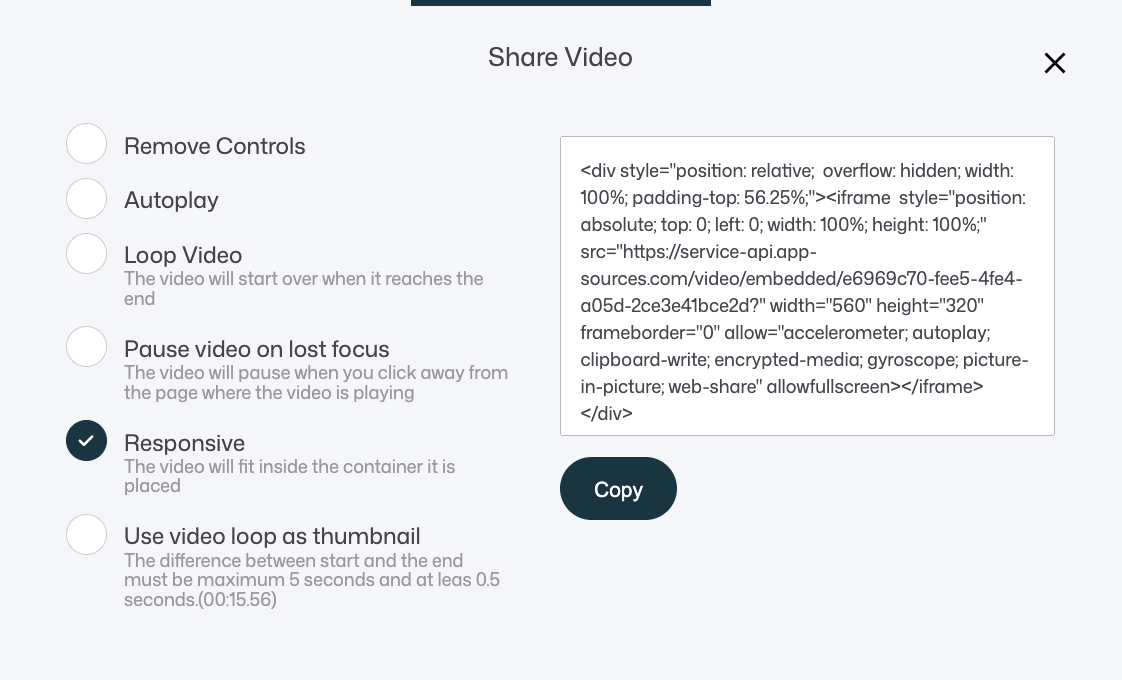 - Paste the code into your website, emails, or any platform that supports embedded videos