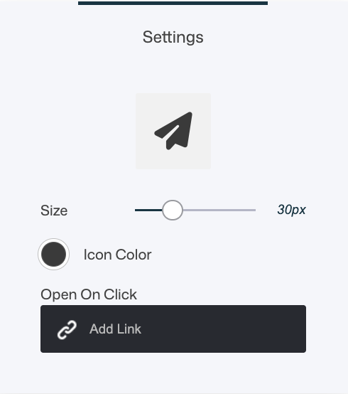 When you select the Icon widget and open Settings, you’ll see the following options.