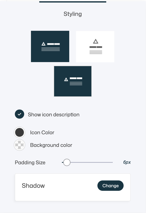 At the top of the Styling settings, you can choose between different layout styles, which control how the icon, title, and description are positioned relative to each other.